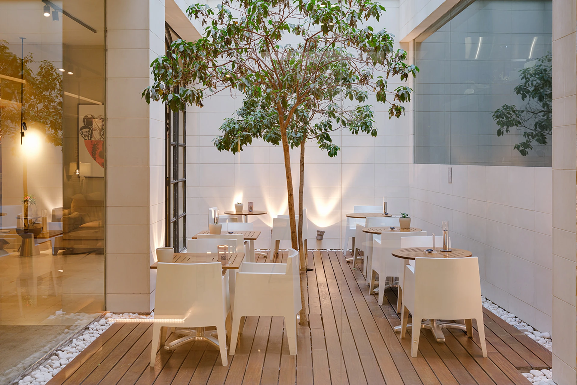 Hay momentos del día que piden un respiro, y el Lounge Bar Velvet es el lugar ideal para dárselo. Este rincón del hotel, abierto tanto a huéspedes como a clientes externos, combina comodidad para el teletrabajo con el placer de una copa entre amigos. Disfrute de nuestra carta en el hall o bajo la luz del patio-terraza acristalado, un refugio que se adapta a su ritmo con un trato cercano y personal.