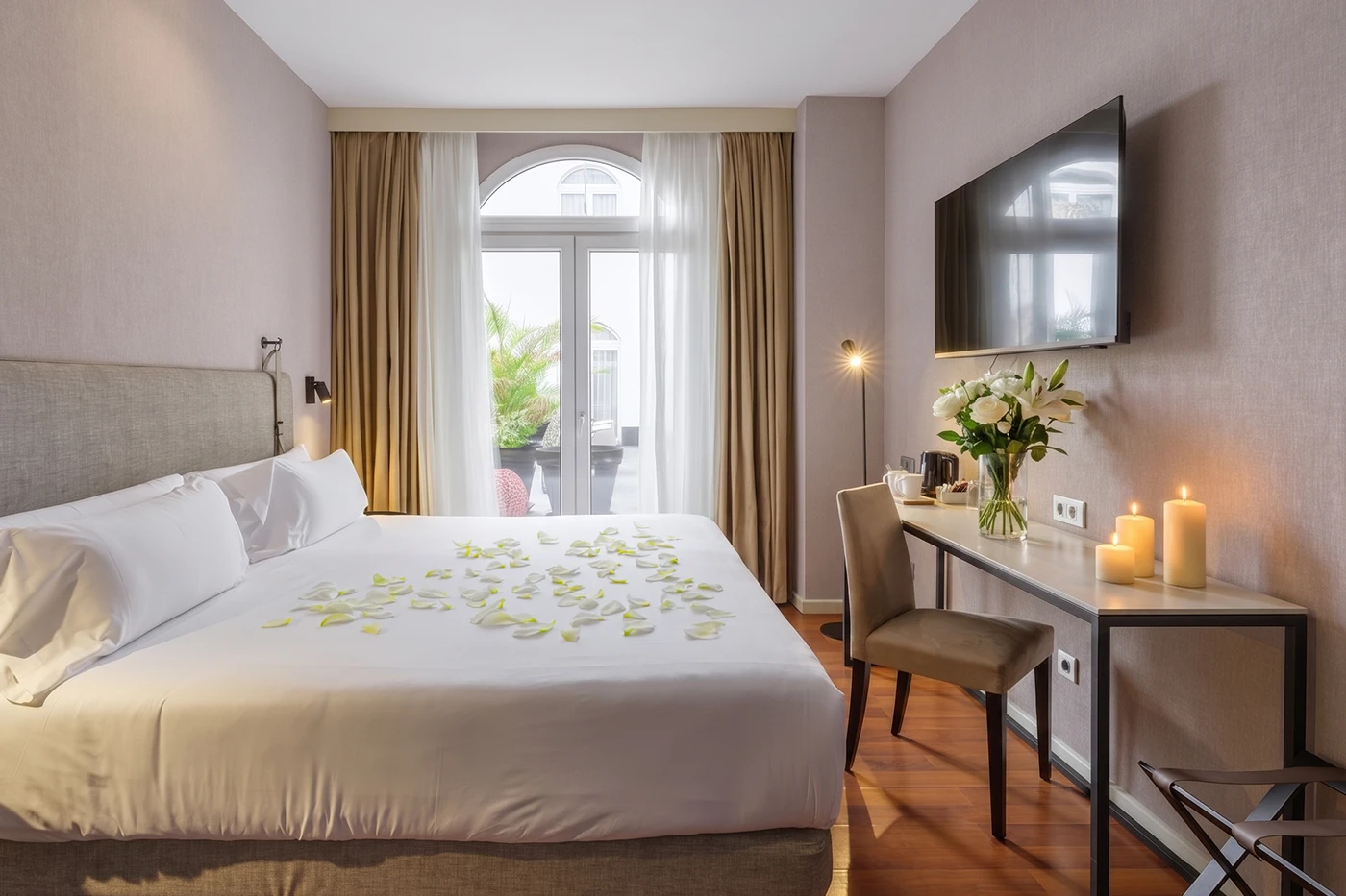 Celebre un momento especial en su habitación o suite. Por un precio de 70 €, preparamos una bienvenida personalizada con cava, chocolates premium, brochetas de frutas, flores frescas, velas y un set de The Body Shop. Un detalle diseñado para crear una velada personalizada y llena de detalles especiales.